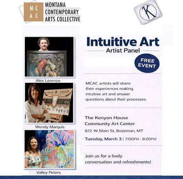 MCAC exists to give a voice to emerging and established contemporary artists in the Bozeman area with a focus on the art and artist. Our community offers the chance to network with fellow Artists and Community Members, continued motivation to make new work and collaboration with fellow members. We will encourage each other, learn from each other, share ideas, critique our artwork, and hold our own shows in unique locations.
